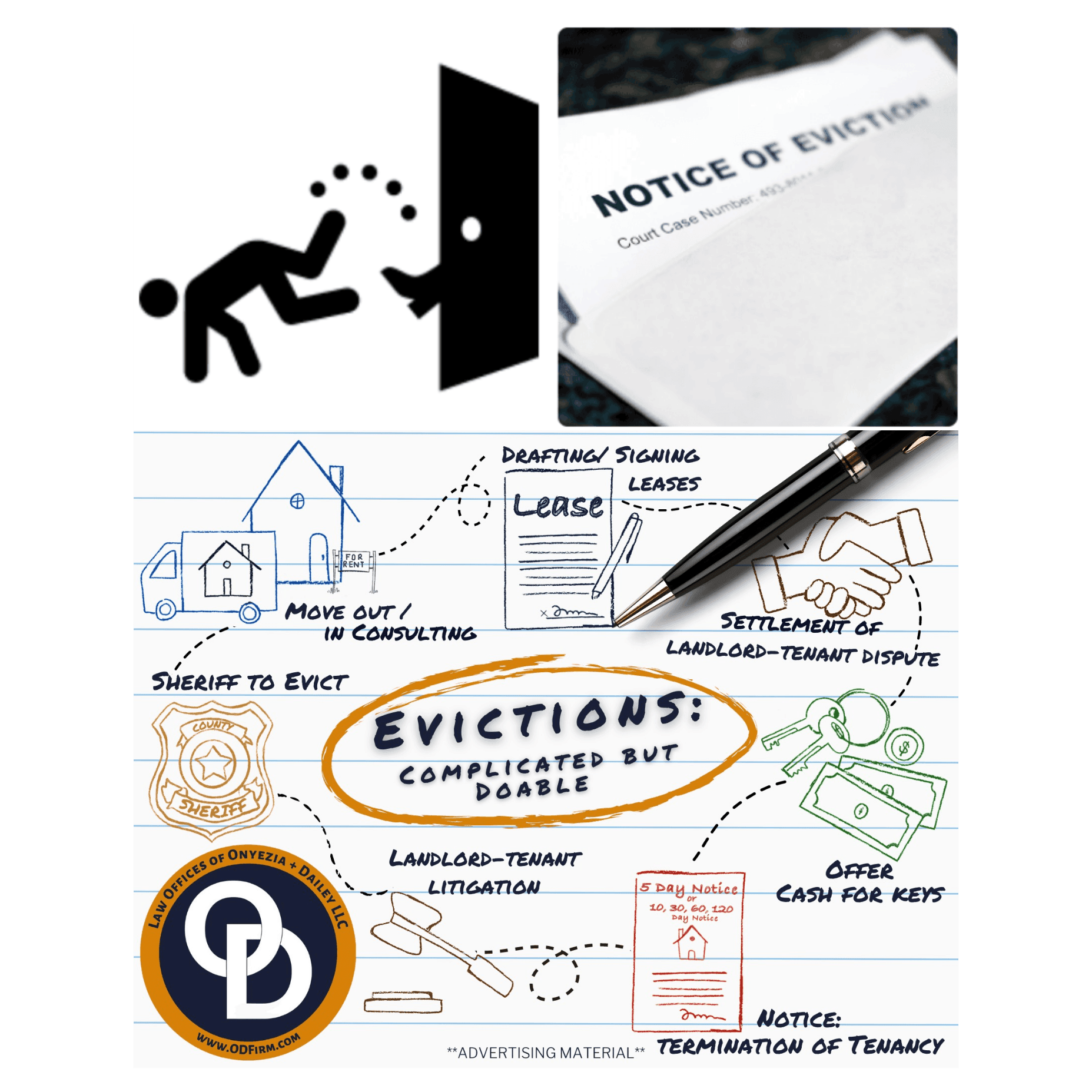 Navigating the eviction process can be an overwhelming task for landlords. At the OD Firm, we provide comprehensive support to ensure that evictions are handled smoothly, efficiently, and in full compliance with the law. Our experienced and highly qualified team is here to guide you through every step of the process, from understanding the legal requirements to representing you in court.